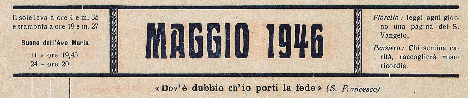 - 02 giugno: Cessa di esistere il Regno d’Italia. Con un referendum a suffragio universale (votano per la rima volta anche le donne) si procede a scegliere tra la monarchia e la repubblica. Prevale uest’ultima con 12.717.923 voti a favore e 10.719.284 contro. Le schede dichiarate non valide furono 1.509.735.