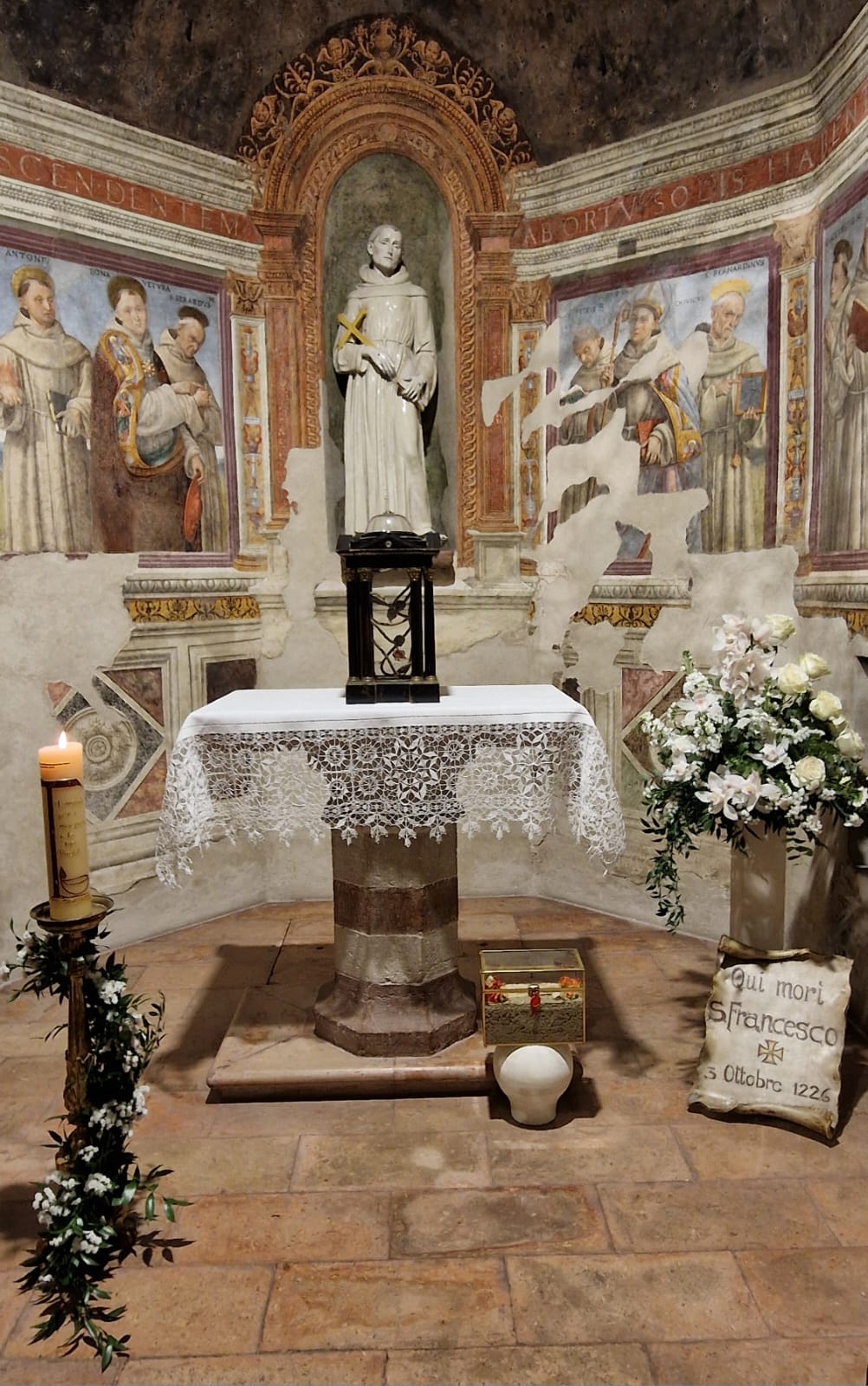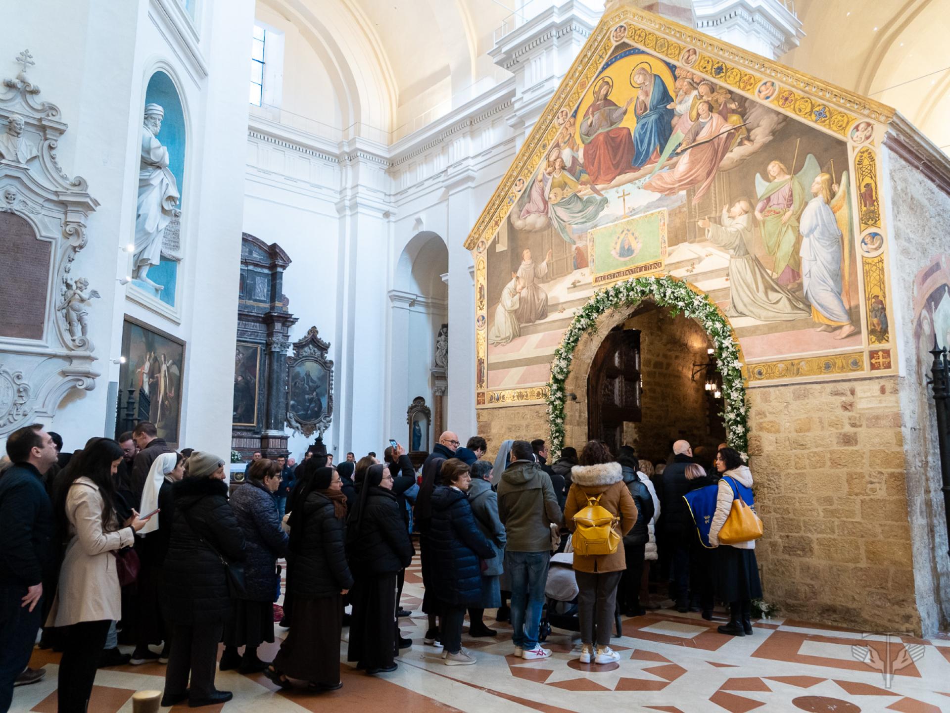 Il rito prenderà vita nella Basilica di Santa Maria degli Angeli, che custodisce, dietro la Porziuncola, la Cappella del Transito, memoria degli ultimi momenti terreni di san Francesco, che, ormai cieco e segnato dalle stimmate, qui volle essere deposto “nudo sulla nuda terra”, il 3 ottobre 1226, gesto supremo di fede nella paternità di Dio e di accettazione di sorella morte corporale.