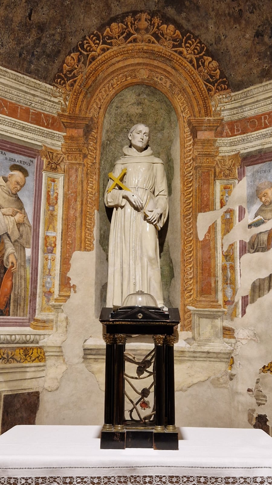 L’immagine sarebbe stata eseguita su un’asse lignea impiegata per accogliere e proteggere il corpo di Francesco immediatamente dopo la sua morte, conferendole un valore non solo iconografico, ma anche profondamente reliquiario e testimoniale. L’opera sarà esposta nel rispetto delle più rigorose misure di tutela, sotto la supervisione della Curatrice del patrimonio culturale della Provincia Serafica.