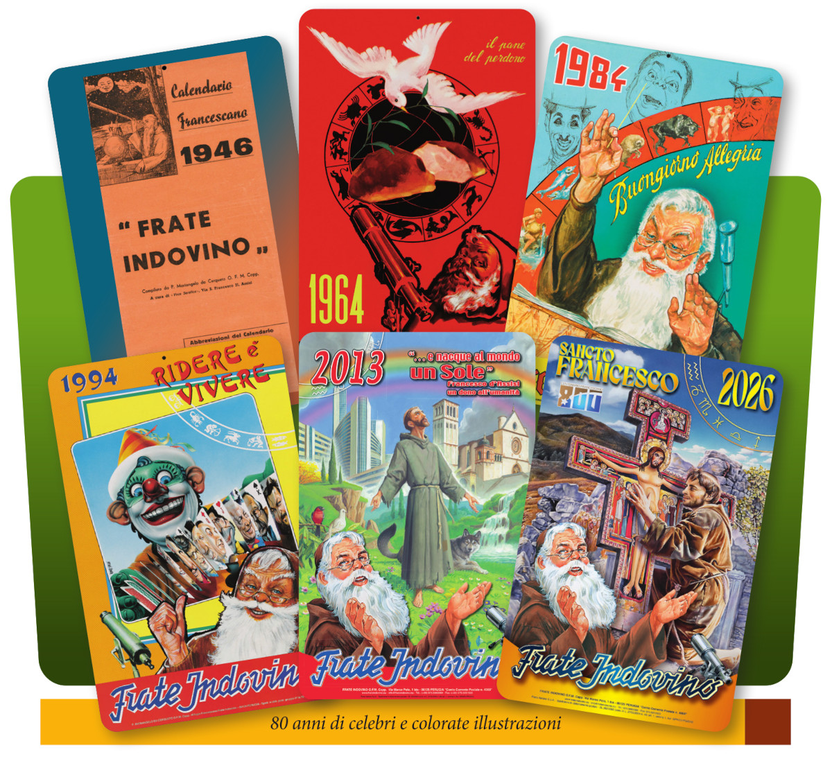 Il Calendario di Frate Indovino è ormai un’eccellenza del patrimonio culturale italiano. Oltre alle riflessioni profonde che partono dalla spiritualità francescana da cui è scaturito, poco più di ottanta anni fa, nelle sue pagine propone notizie e informazioni utili e curiose in maniera semplice e istruttiva, ironica e divertente. Nacque, infatti, nel Natale del 1945 a Perugia per iniziativa di padre Mariangelo da Cerqueto (al secolo Mario Budelli) che attraverso questo almanacco allegro e colorato riuscì a creare uno stretto legame tra il convento e la vita domestica, una sintesi del carisma cappuccino, uno strumento capace di diffondere fede, principi morali e conoscenza a tutta la famiglia e, al tempo stesso, infondere ottimismo, letizia, serenità e buon umore.