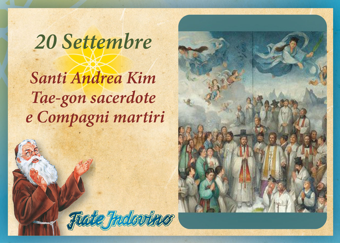 La fede cristiana giunse in Corea agli inizi del XVII secolo e, malgrado l’assenza di pastori, si costituì una fervente comunità guidata da laici. Nel 1836, giunsero in segreto i primi missionari dalla Francia. Ma, il Governo e la religione tradizionale ostacolarono duramente i primi cristiani e le persecuzioni durarono oltre cento anni. Malgrado ciò, la fede cristiana fioriva e si rafforzava, aveva in sé quel seme fecondo che suscitò la primavera della Chiesa coreana. Molti furono i martiri. Documentato è il martirio subito tra il 20 e il 21 settembre, da un gruppo di 103 persone tra uomini, donne, anziani, giovani e bambini: il più giovane aveva 13 anni, il più anziano ne aveva 79.