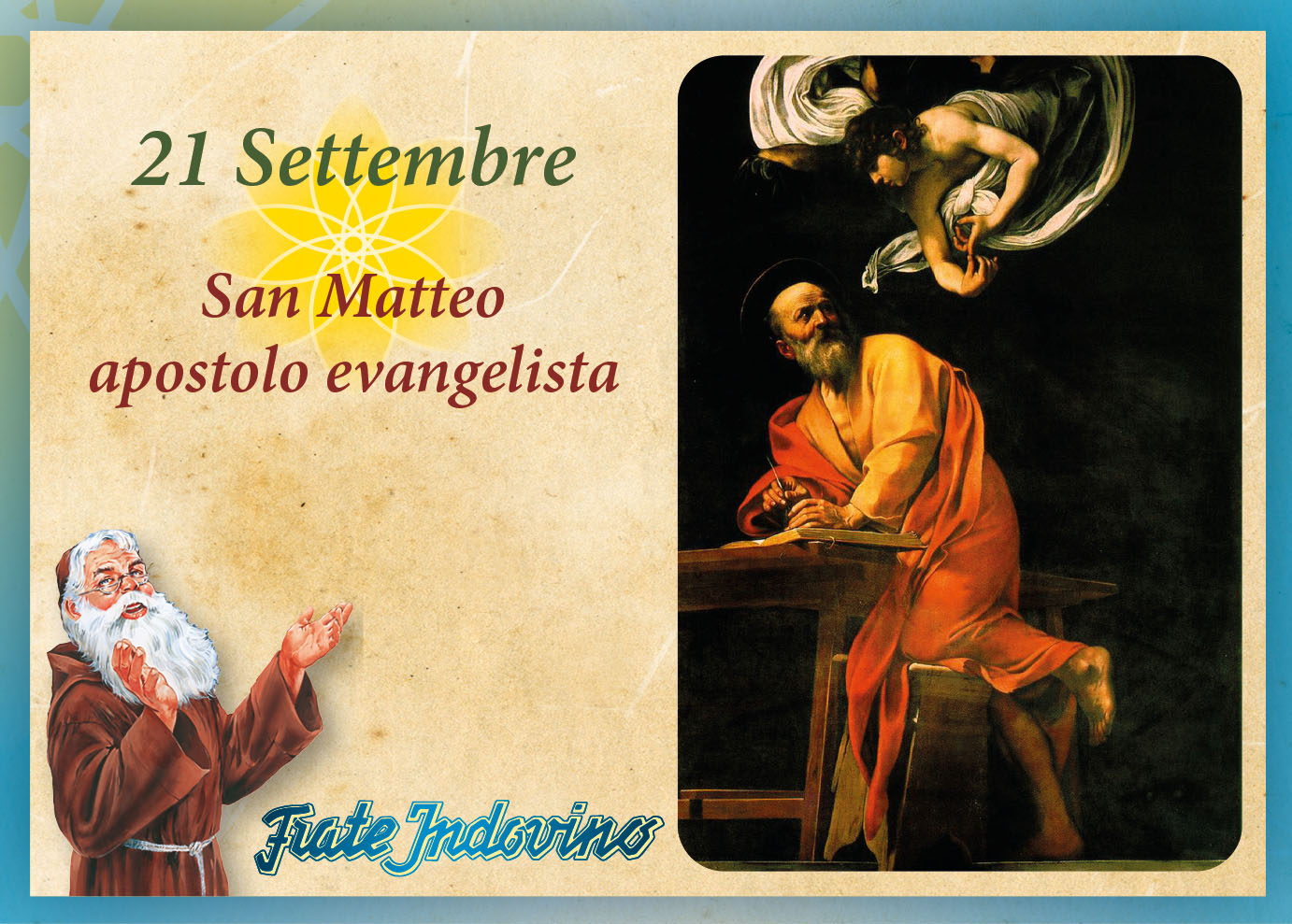 Matteo era un pubblicano, cioè un esattore delle tasse, mestiere disprezzato dagli ebrei, perché le tasse venivano estorte dai romani oppressori e da persone senza scrupoli. Matteo, chiamato anche Levi, viveva a Cafarnao e un giorno, davanti al suo banco delle imposte passò Gesù. Rispose senza esitazione alla chiamata del Messia e, da quel momento, cambiò la sua vita. Per lui, l’incontro con Gesù, fu davvero un dono e lo seguì fedelmente fino al momento della Risurrezione. Dopo qualche anno dalla morte del Maestro, ebbe l’ispirazione di scrivere ciò che aveva visto e udito. Egli scrisse per i cristiani ebrei e citò con cura i Profeti per far capire come in Gesù si fossero compiute le promesse fatte dal Signore al suo popolo. Il suo è il primo tra i quattro Vangeli, il più ampio e particolareggiato. Non si conosce molto della vita di Matteo. Egli viene celebrato come martire dalla Chiesa, ma probabilmente morì anziano.