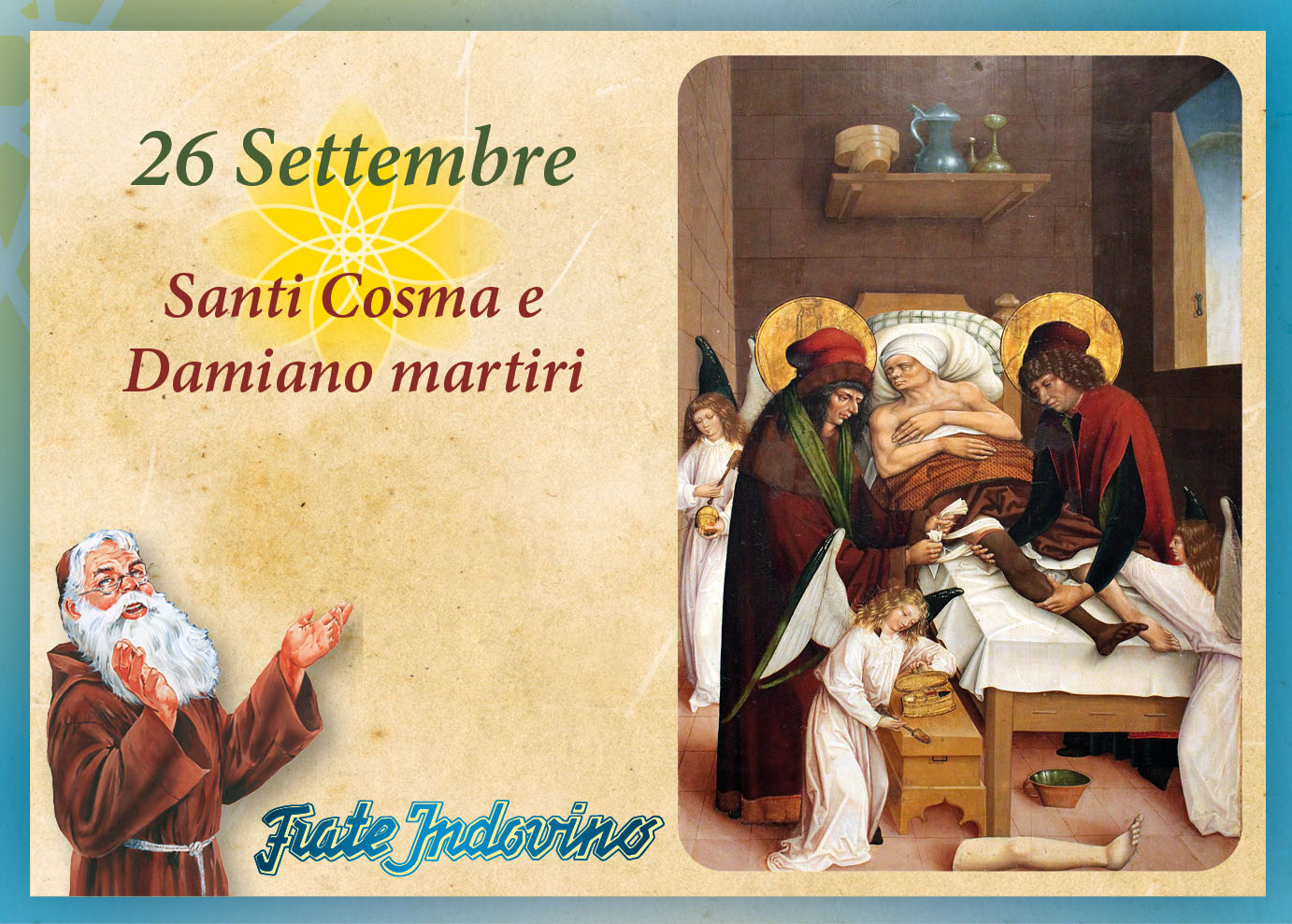 Gemelli, medici a Egea in Cilicia, erano dediti alla cura gratuita di uomini e anche di animali. L’attenzione ai malati era per loro uno strumento di apostolato. Infatti, essi cercavano anche di infondere forza e coraggio nei malati, facendogli conoscere il messaggio evangelico. Per questo furono arrestati durante la persecuzione di Diocleziano, a lungo tormentati dissero ai loro persecutori: “ Noi adoriamo il solo vero Dio e seguiamo il nostro unico maestro, Gesù Cristo”. Infine, furono decapitati. I cristiani cercarono di impadronirsi delle loro reliquie, ma il dromedario che le trasportava dichiarò: “Non li separate nella sepoltura, perché non sono separati nel merito”. Così, furono sepolti insieme a Ciro, in Cilicia e da lì il culto si estese in tutto l’Oriente. Giunse a Roma grazie all’Imperatore Giustiniano, che ricevette per loro intercessione una grazia e a Papa Felice IV.