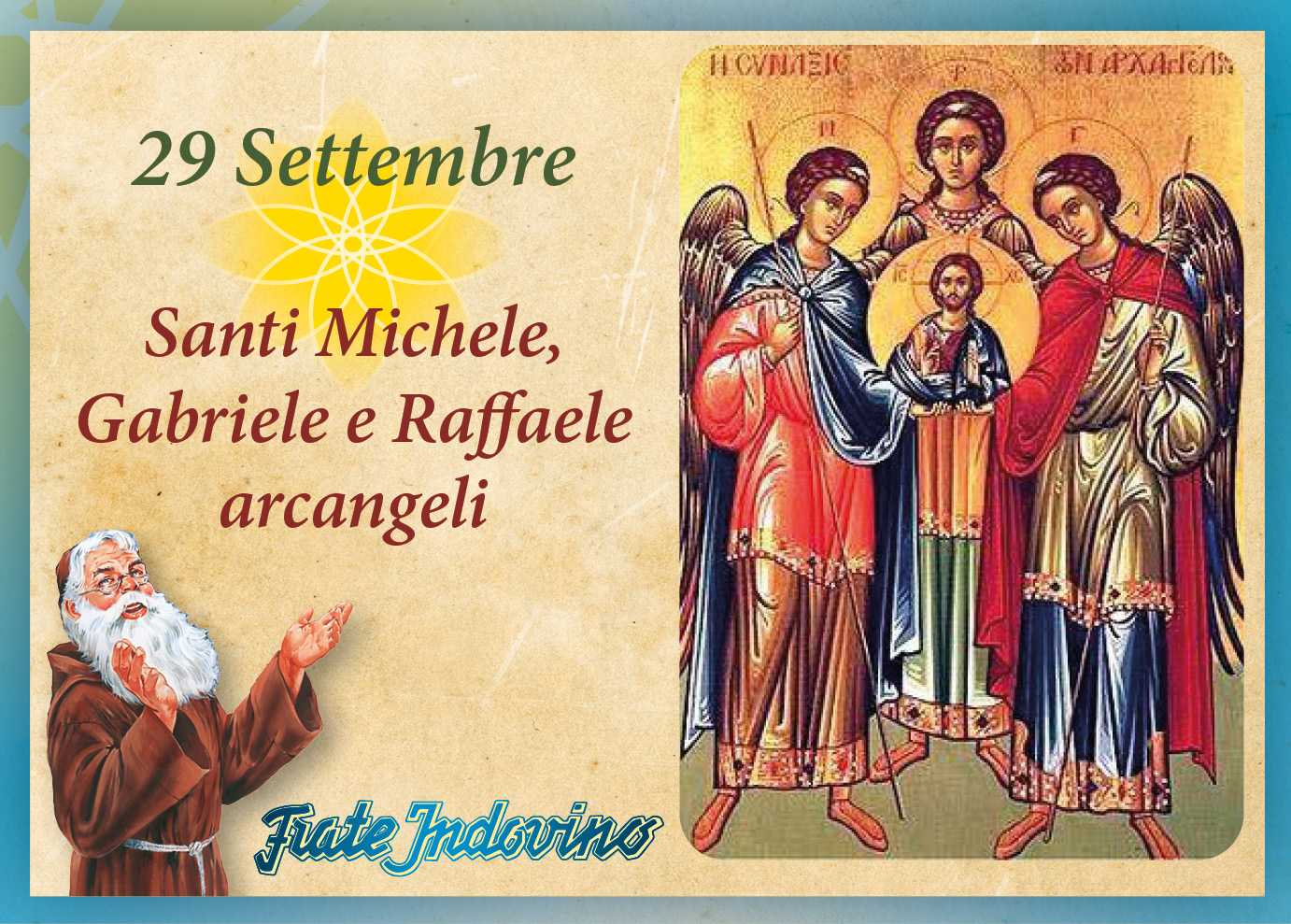 La devozione ai tre Arcangeli è molto antica. Il titolo di Arcangelo deriva dalla descrizione di una corte celeste di Angeli ordinati secondo gradi e dignità differenti. Gli Arcangeli Michele, Gabriele e Raffaele occupano le sfere più elevate delle gerarchie angeliche. Le gerarchie hanno il compito di preservare la trascendenza e il mistero di Dio e rendono percepibile la sua vicinanza salvifica.