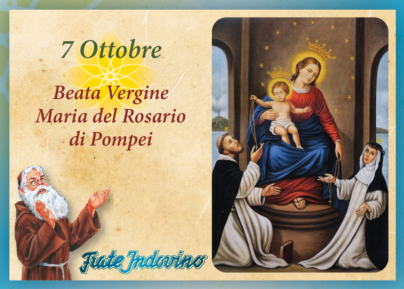La festa di oggi deriva da Santa Maria della Vittoria, festa istituita da Papa Pio V per commemorare la vittoria delle forze cristiane riportata a Lepanto sulla flotta turca, il 7 ottobre 1571. Non deve però fuorviare l’evento storico: il Rosario è strumento di pace, nato probabilmente nel Medioevo dall'amore dei cristiani per Maria. La corona, con cui si recita la preghiera, ha origini antiche. Gli anacoreti orientali usavano le pietruzze per contare il numero delle preghiere recitate. Nei conventi medioevali, i fratelli laici che non conoscevano il latino, recitavano il “Paternostro” contando con una collana di grani infilati a uno spago.