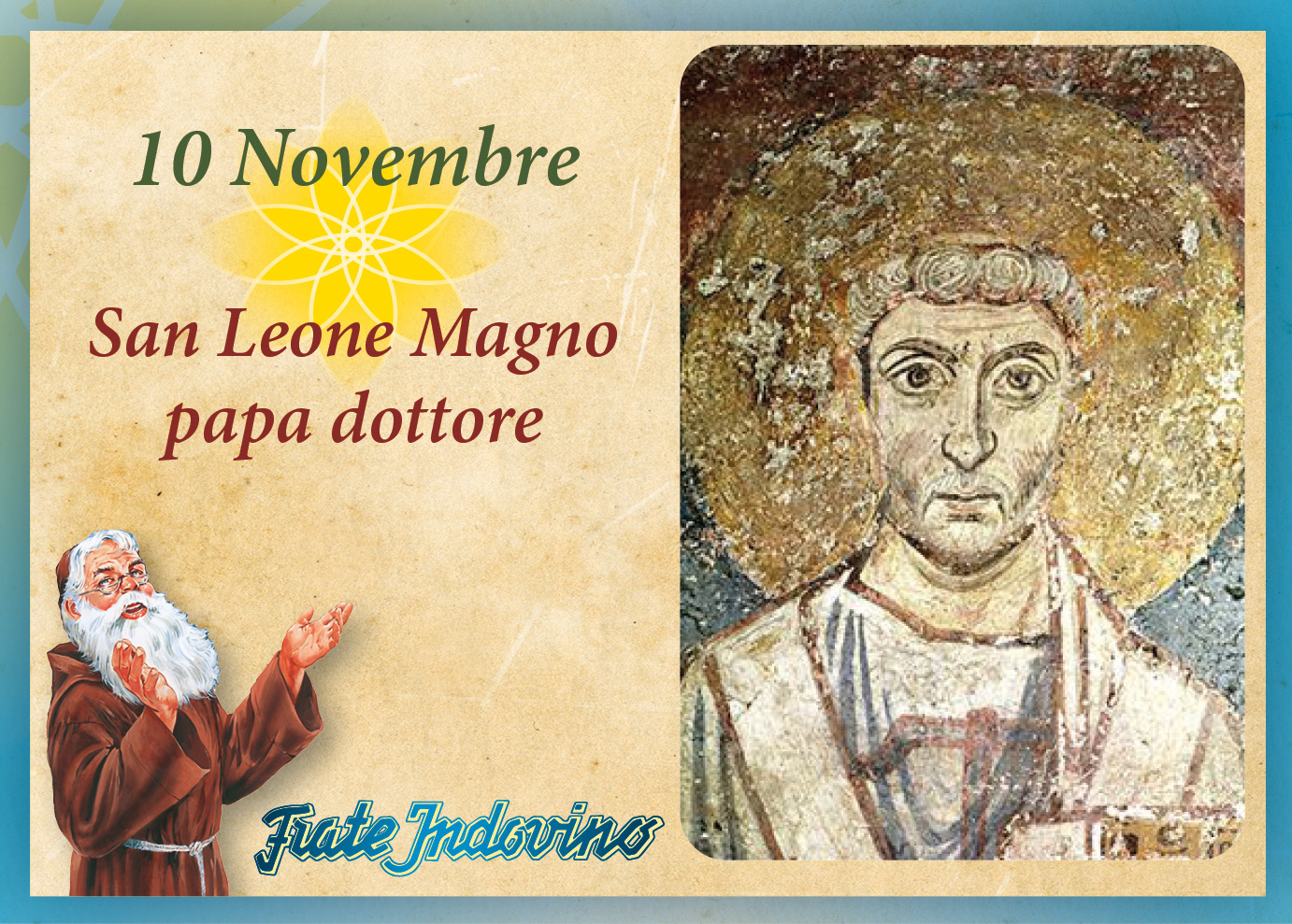 Leone nacque sulla fine del IV secolo, probabilmente, a Roma. Ricevette un’educazione accurata, tanto da conoscere bene varie dottrine. Fu eletto papa nel 440, convinto del ruolo e del prestigio trasmesso ai successori di Pietro. La Chiesa, in quegli anni, era travagliata e divisa da discordie e scontri dottrinali. Come primate di tutti i vescovi, affermò la sua autorità su tutte le Chiese d’occidente e, con energia e persuasione, riuscì a combattere il movimento eretico diffuso dall’abate orientale Eutiche, il quale sosteneva che in Cristo esiste una sola natura. Anche in campo politico, a Papa Leone venne riconosciuto prestigio e influenza. Infatti, in un momento di crisi dell’Impero, Attila al comando degli Unni marciava verso Roma. Lo Stato, impotente, chiese a Leone di intervenire. Il Papa, con una delegazione del Senato, incontrò Attila sul Mincio e l’autorità morale di Leone convinse l’invasore a lasciare l’Italia. Importanti e raffinate sono le opere da lui scritte e ad esse deve il titolo di Dottore. Egli fu, poi, proclamato Magno (primo tra i pontefici) per la sapienza nella difesa della vera fede e per lo zelo nell’esercizio dell’attività pastorale.