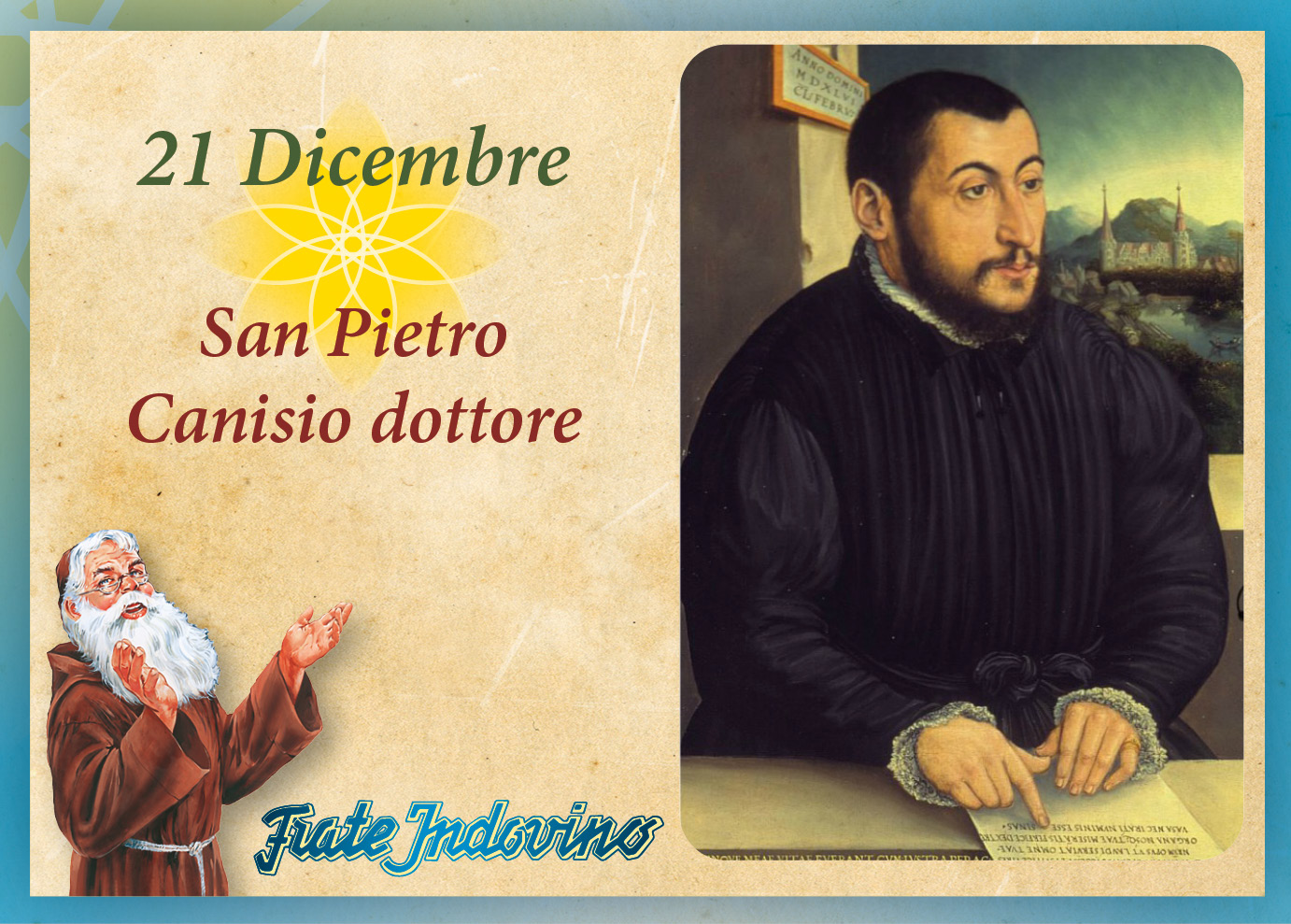 Peter Kanijs, latinizzato in Canisius, nacque nel 1521, a Nimega, in Olanda, allora territorio dell’Impero tedesco. Giovane di talento, intelligente, sapiente, aperto alla vita, tra le diverse strade tra cui poteva scegliere, decise per lo studio della teologia. Appassionato, divenne grande conoscitore della Sacra Scrittura e della patristica. L’evento che diede la svolta significativa alla sua vita fu l’incontro con Pietro Faber, compagno di sant’Ignazio di Loyola, persona di alto profilo spirituale. Fu così che entrò nella Compagnia di Gesù, dove fu ordinato sacerdote e offrì tutto sé stesso nel suo operato. Viaggiò moltissimo in tutta l’Europa: strinse relazioni con personaggi influenti di cui divenne consigliere e in cui riuscì a risvegliare la fede viva; si impegnò per una migliore formazione del clero, difendendo la fede cattolica; ricompose un legame più stretto tra Roma e la Chiesa tedesca.