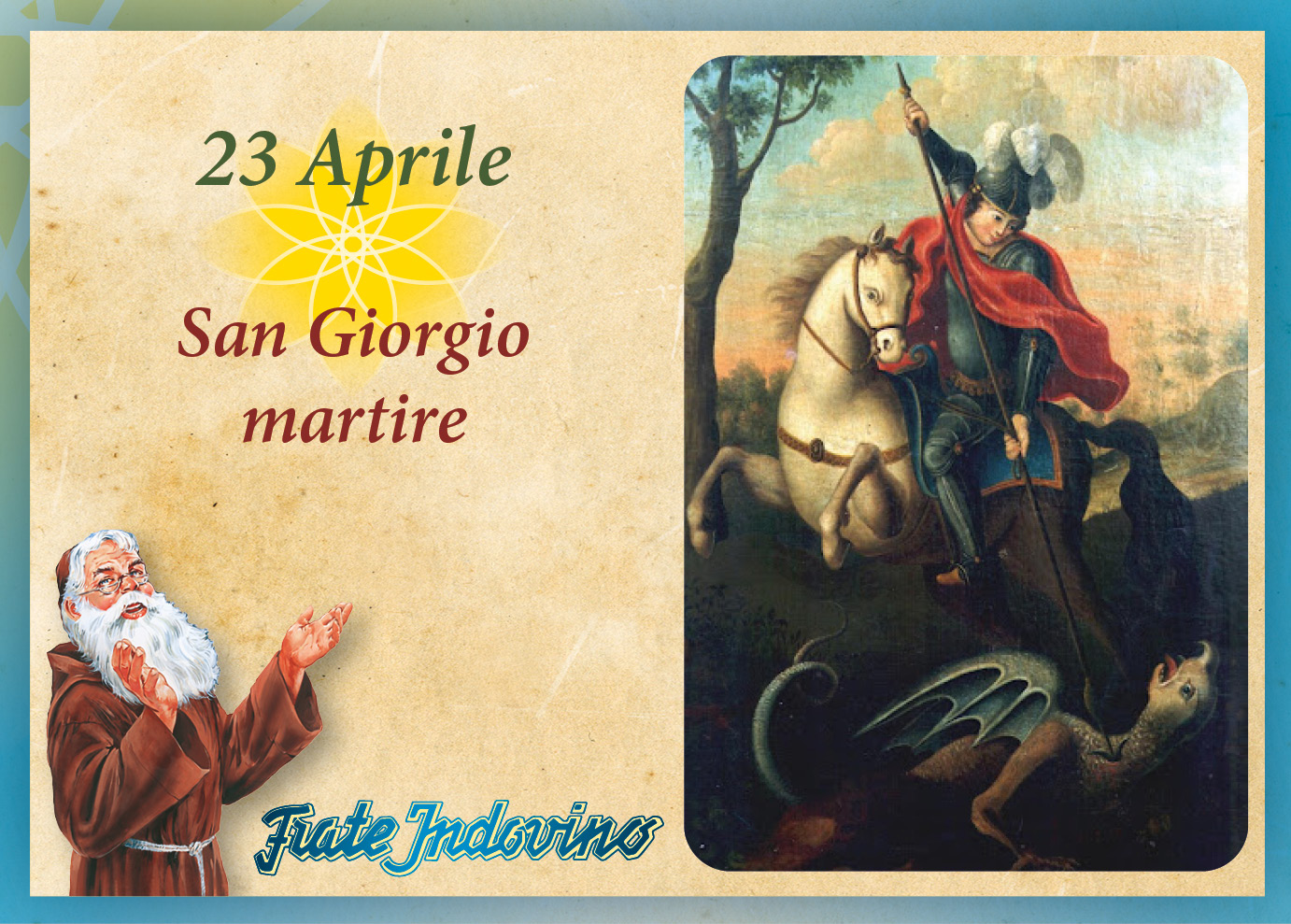 Giorgio fu venerato, fin dall’antichità, sia in Oriente, sia in Occidente e la sua fama fu tanto vasta che non esiste paragone tra i martiri dell’epoca. Non si hanno, però, notizie certe sulla sua vita. La leggenda narra di un dragone che usciva dalle acque del lago e si avvicinava alle mura della città, portandovi morte. Per tenerlo lontano, gli abitanti sorteggiavano dei giovani da dare in pasto alla bestia. Un giorno, toccò in sorte alla figlia del re. Ma, Giorgio ingaggiò col drago un furioso combattimento e lo uccise, salvando la principessa da sicura morte e la città dall’asservimento. In cambio della liberazione raggiunta, Giorgio chiese al popolo della città di credere in Cristo e di farsi battezzare.