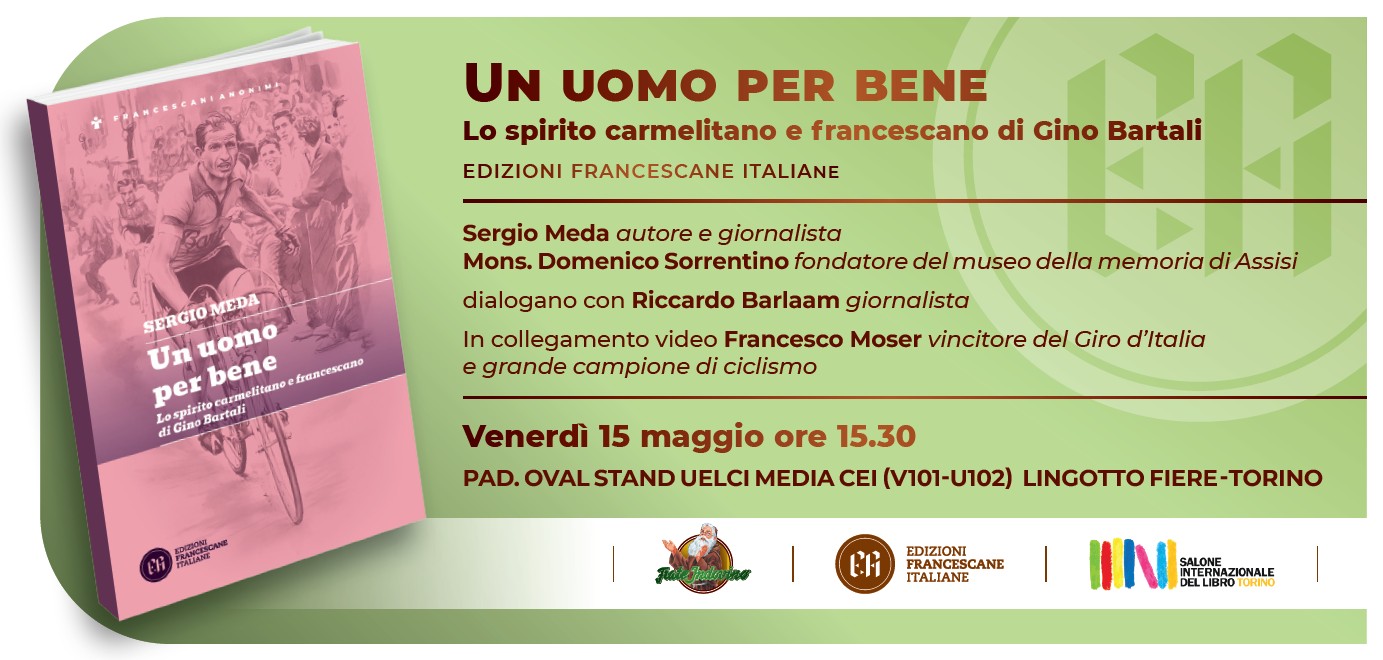 Nei giorni in cui si corre la 109^ edizione del Giro d’Italia, a ottant'anni dalla sua terza e ultima vittoria della Corsa Rosa e in occasione dell’Anno Giubilare di San Francesco (800 anni dalla sua morte), il giornalista sportivo Sergio Meda restituisce al pubblico il volto più autentico di "Ginettaccio" nel libro “Un uomo per bene. Lo spirito carmelitano e francescano di Gino Bartali”. La prefazione è firmata dal grande campione del ciclismo italiano, Francesco Moser.