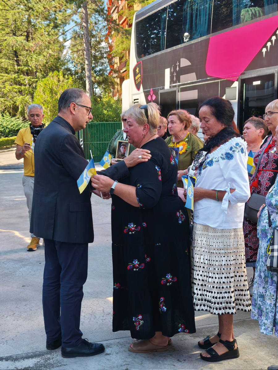 Vedere quaranta di queste mamme nella sede di Frate Indovino a Perugia, ben allineate sulle loro sedie, in attesa di scendere a Roma per abbracciare niente meno che papa Leone XIV, e davvero toccante. Sono qui per dire grazie alla famiglia cappuccina che – attraverso la Fondazione Assisi Missio e col contributo dei lettori di Frate Indovino – ha permesso la realizzazione dell’operazione “Madri di Casa Padre Pio”, nella quale sono state coinvolte e assistite fino ad ora piu di 500 donne. Nel corso dell’incontro, le quaranta donne ucraine hanno potuto abbracciare il vescovo di Perugia, mons. Ivan Maffeis, il Provinciale cappuccino, fr. Simone Calvarese, fr. Carlo Maria Chistolini, che per tre volte, assieme al nostro direttore Paolo Friso, aveva gia incontrato le nostre mamme proprio nella “Casa Padre Pio” a Kyiv, il direttore della Caritas di Perugia, don Marco Briziarelli, e tutti i lavoratori di Frate Indovino, condividendo la loro gioia e la loro riconoscenza. Tanti i momenti emotivamente coinvolgenti, molte le lacrime. Una collega della redazione di Frate Indovino ha cosi espresso tutta la sua commozione al termine dell’evento: ≪Per me l’Ucraina era uno schermo televisivo, era un nome lontano. Oggi e una madre che ha il volto di queste straordinarie donne che ho visto e conosciuto nei nostri uffici≫.