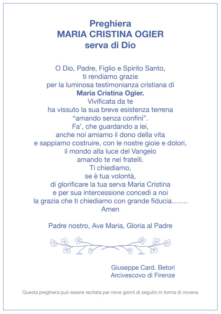 Preghiera MARIA CRISTINA OGIER serva di Dio